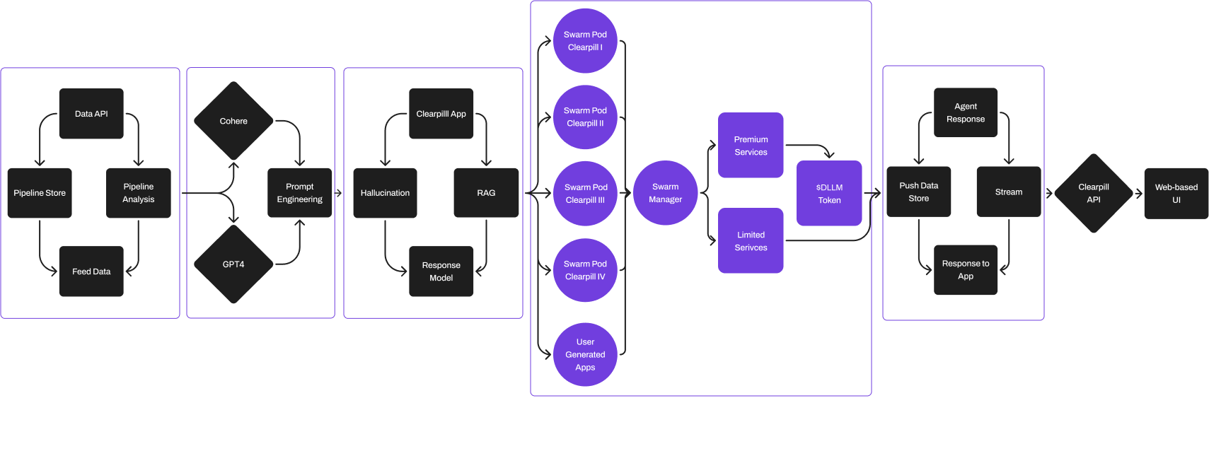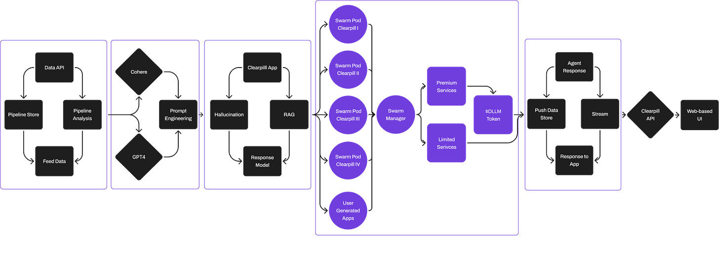 We propose a decentralized, multi-ppp relevant, ideologically-transparent system, designed to unlock the full potential of commercial and open-source LLMs. Our intent-sensitive Swarm Manager orchestrates a modular network of efficient, customizable GenAI apps called Clearpills, trained on an LLMOps infrastructure utilizing multiple LLMs, fine-tuned by RAG technology. Seraphnet’s AI infrastructure does not stop at the surface-level but allows you to get to the essence of your task.